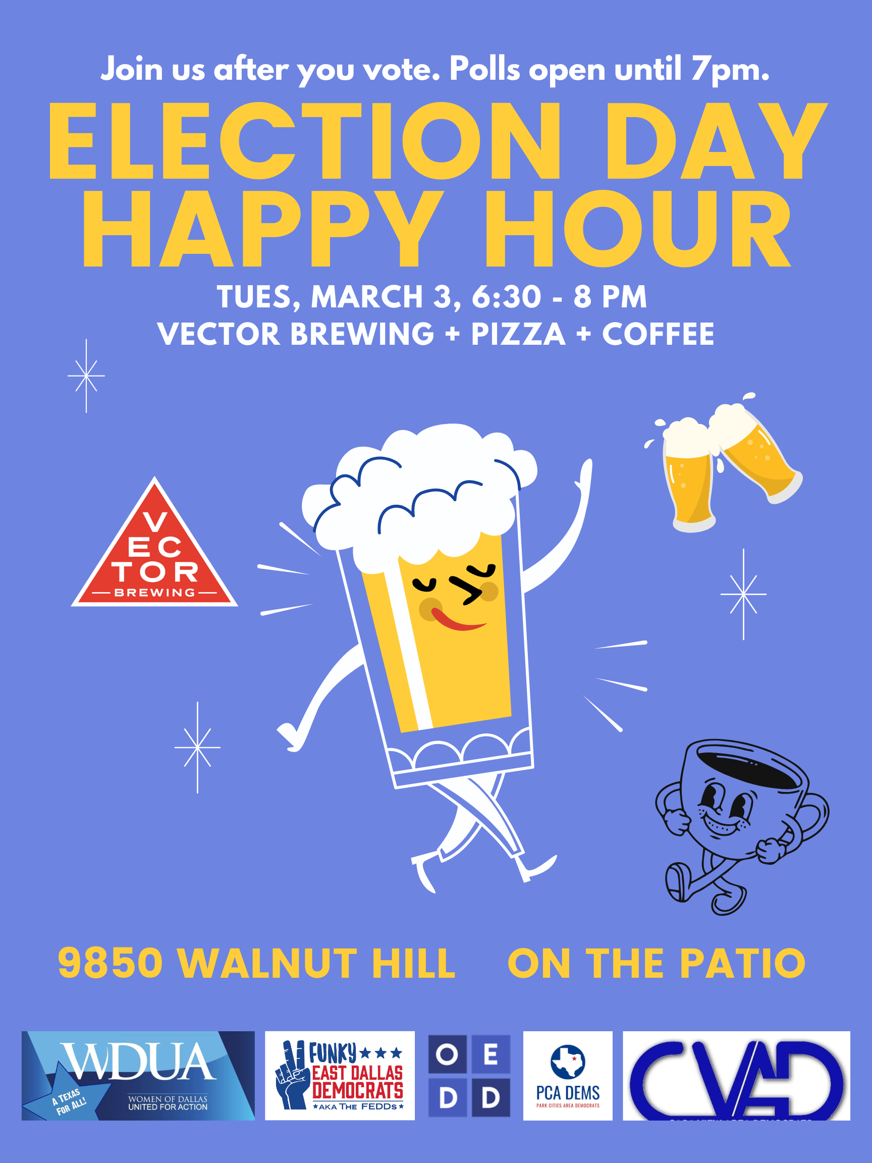 After you vote in the Democratic Primary Election, join us for an Election Day Happy Hour with friends.